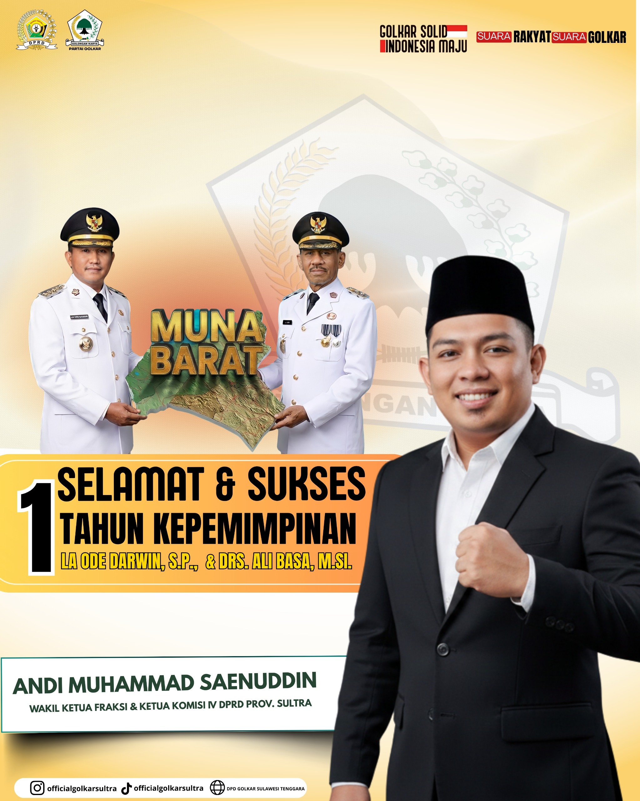 MUNA BARAT, GOLKARSULTRA -- Bupati Muna Barat, La Ode Darwin, yang juga Ketua DPD I Partai Golkar Provinsi Sulawesi Tenggara...